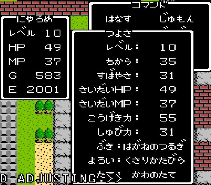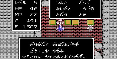 「マイラの村」で「妖精の笛」を見つけ、道具屋で「キメラの翼」を買い、「ラダトームの城」に飛び、復活の呪文を手に入れる。