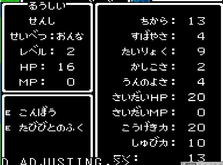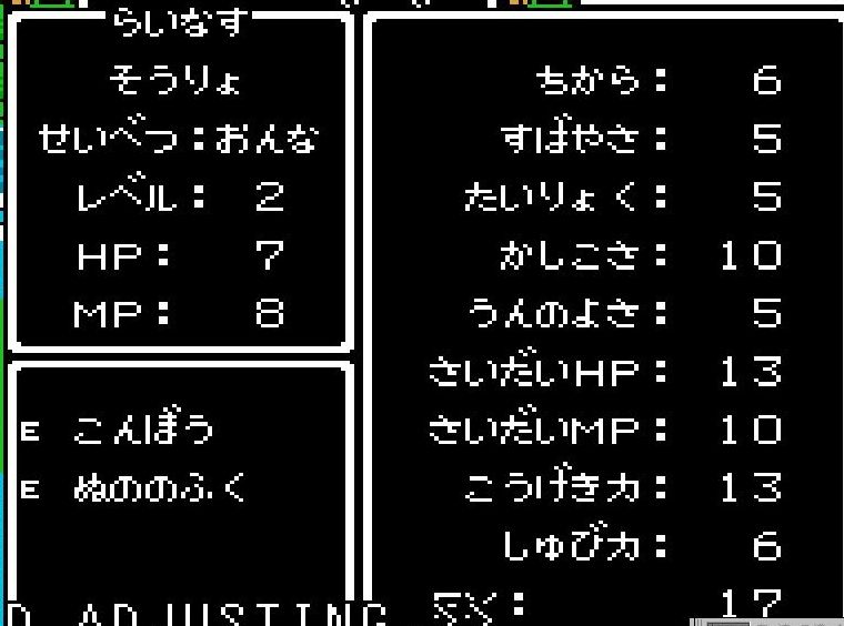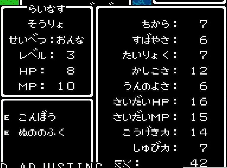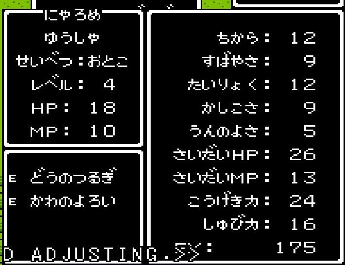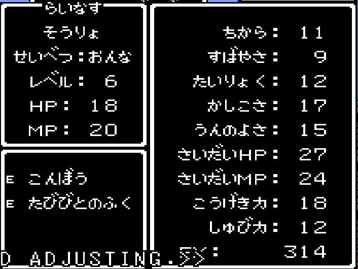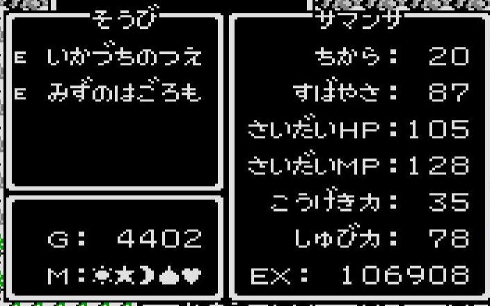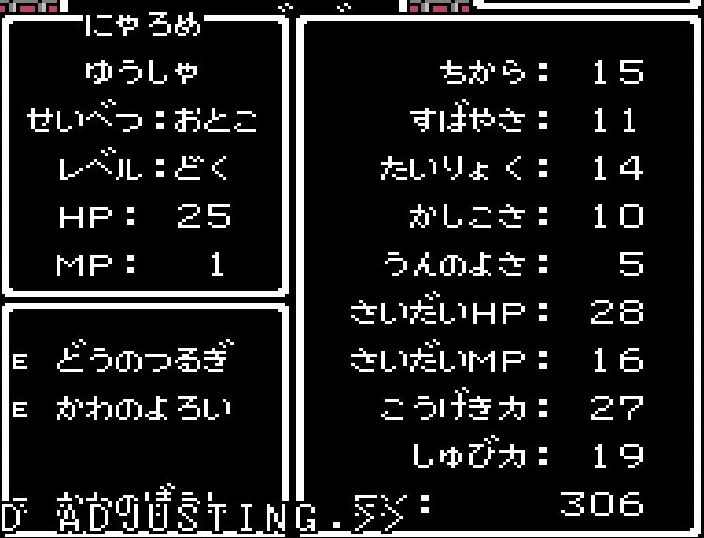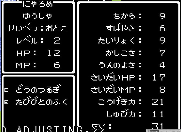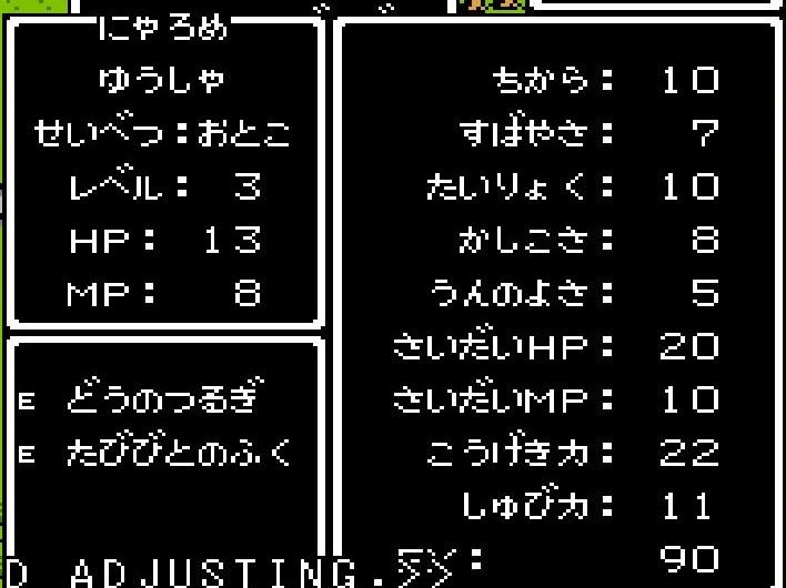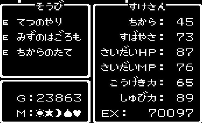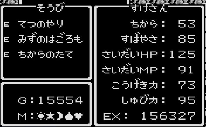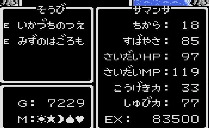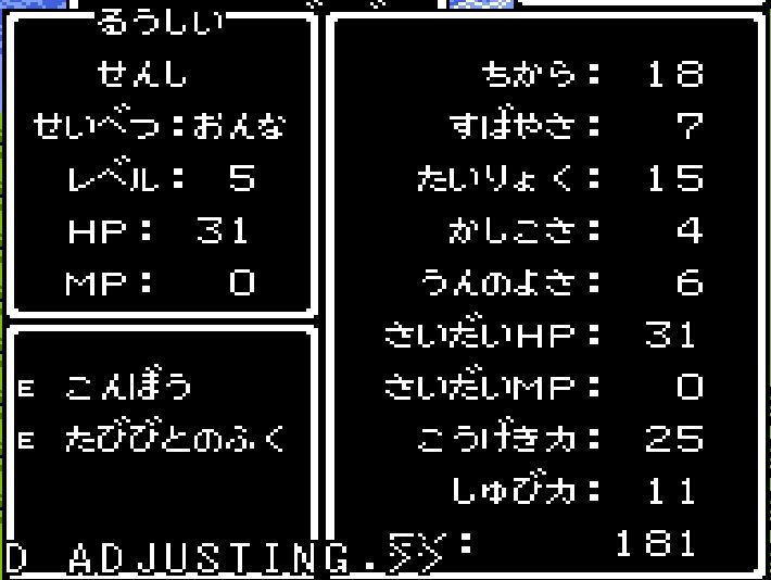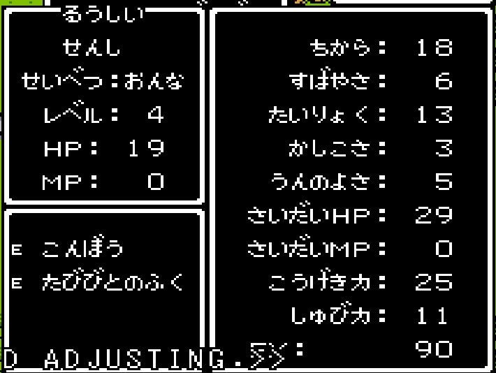 そうすると、「破壊の剣」の威力を持った「はやぶさの剣」と「悪魔の鎧」の守備力のままの「ロトの鎧」になる。これは便利。レベルアップしたり、装備を変えると効力がなくなるらしい。