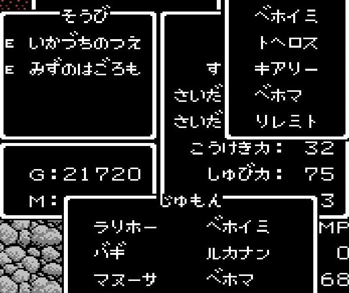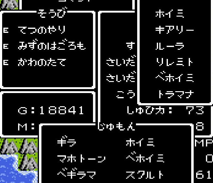 「ダークアイ」が苦手。MPを容赦なく吸い取るので、何度「リレミト」を使って宿屋に戻ったことか。