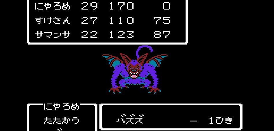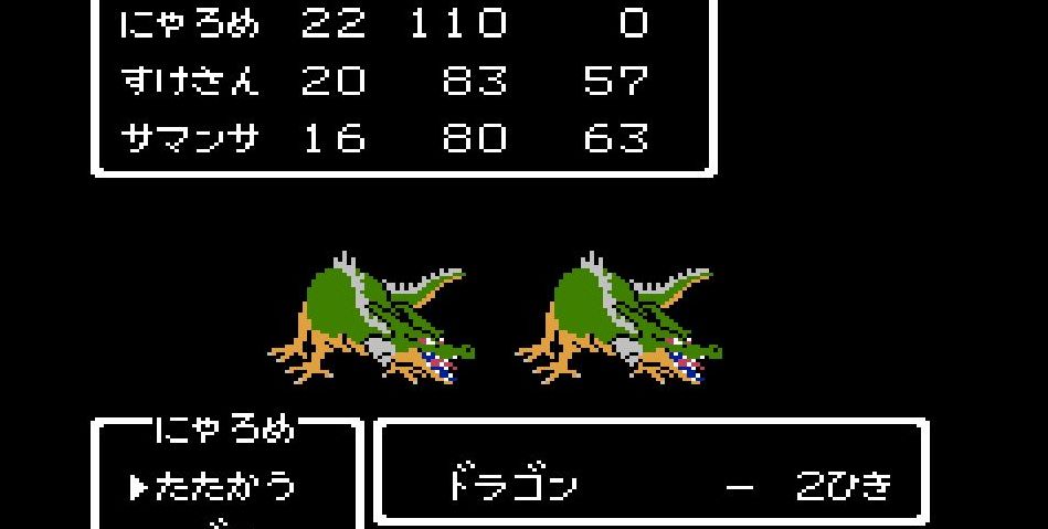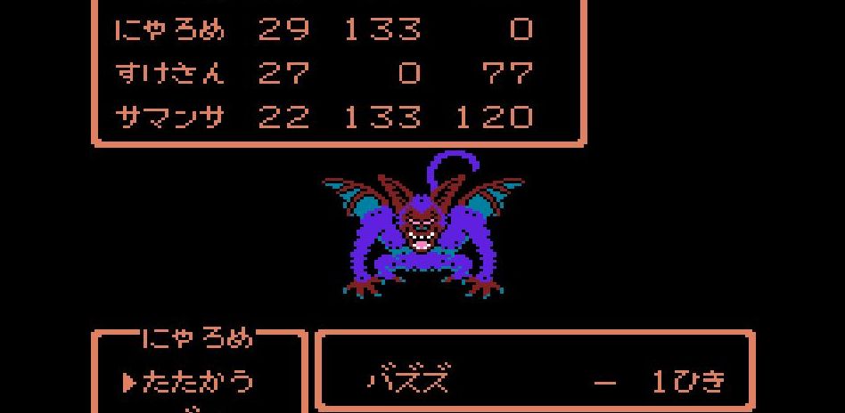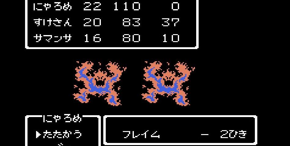 勇者・にゃろめがレベル3にアップ。呪文「メラ」を覚える。