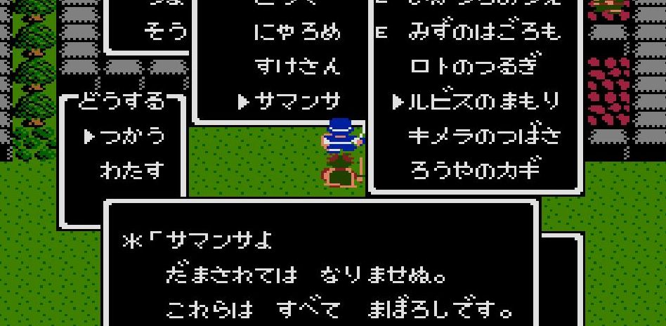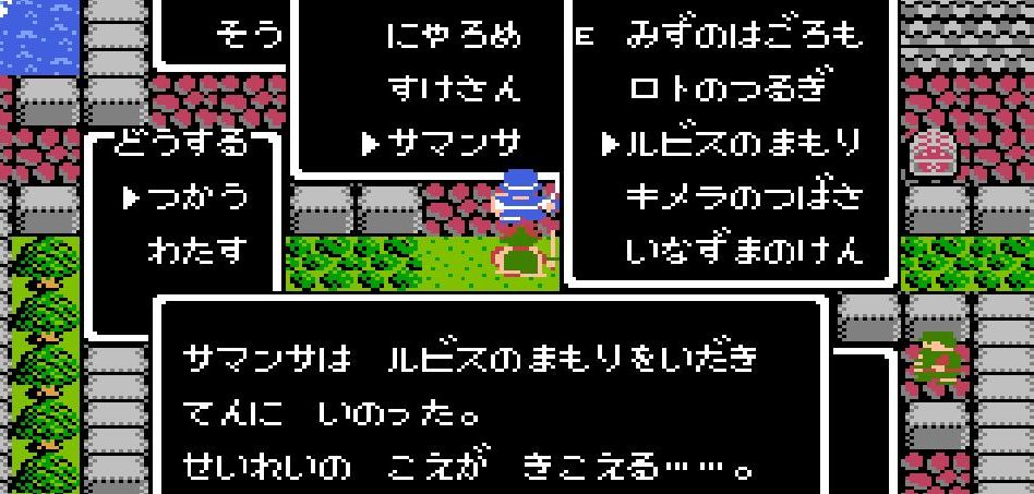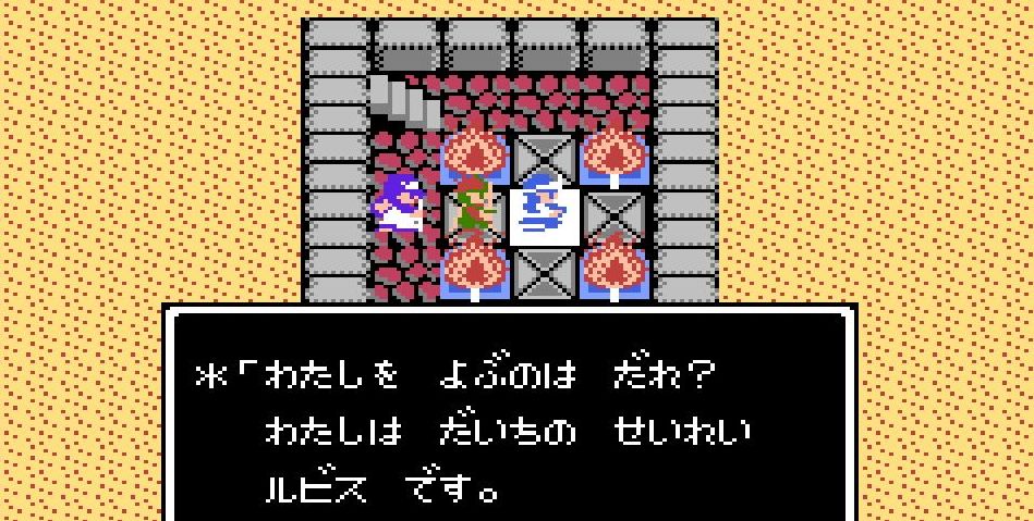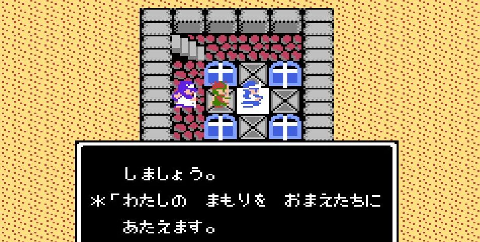 にゃろめらがロトの子孫だと気づくと、「では私は勇者ロトとの約束を果たすことにしましょう」と言いながら、「ルビスの守り」をくれる。