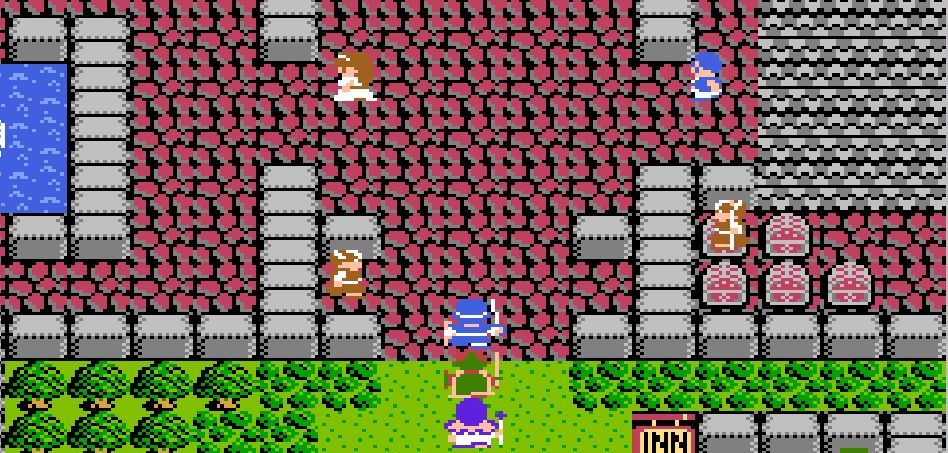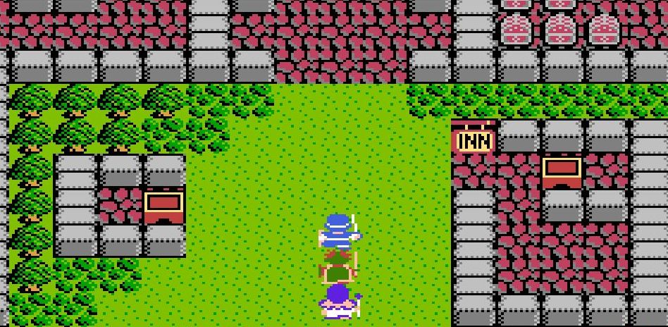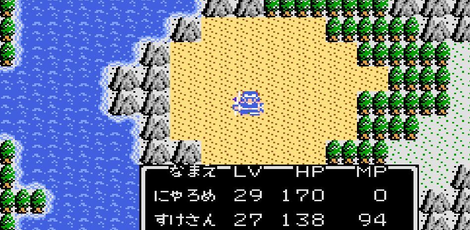 「レーベの村」周辺で戦い、夜になると「アリアハンの城」に戻り、自宅で休息を取る。
