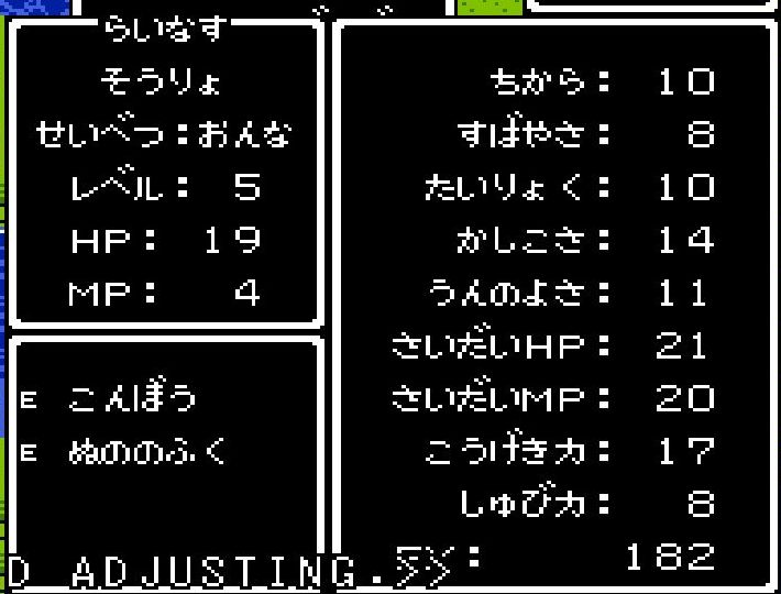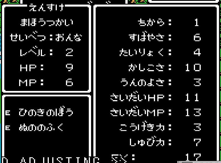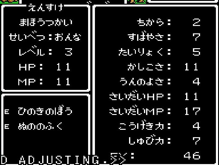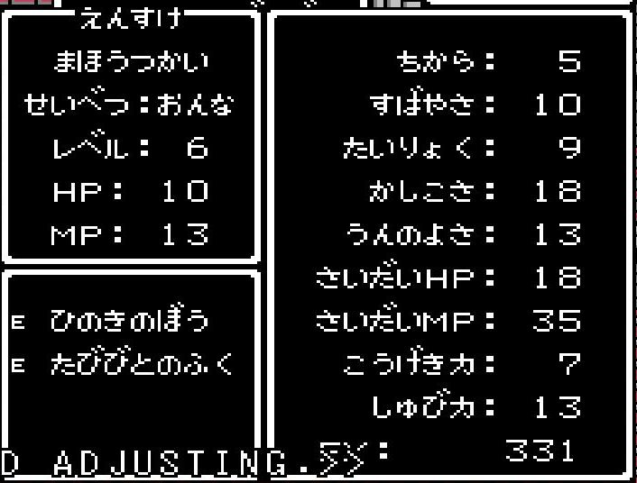 魔法使い・えんすけがレベル5にアップ。呪文「ヒャド」を覚える。